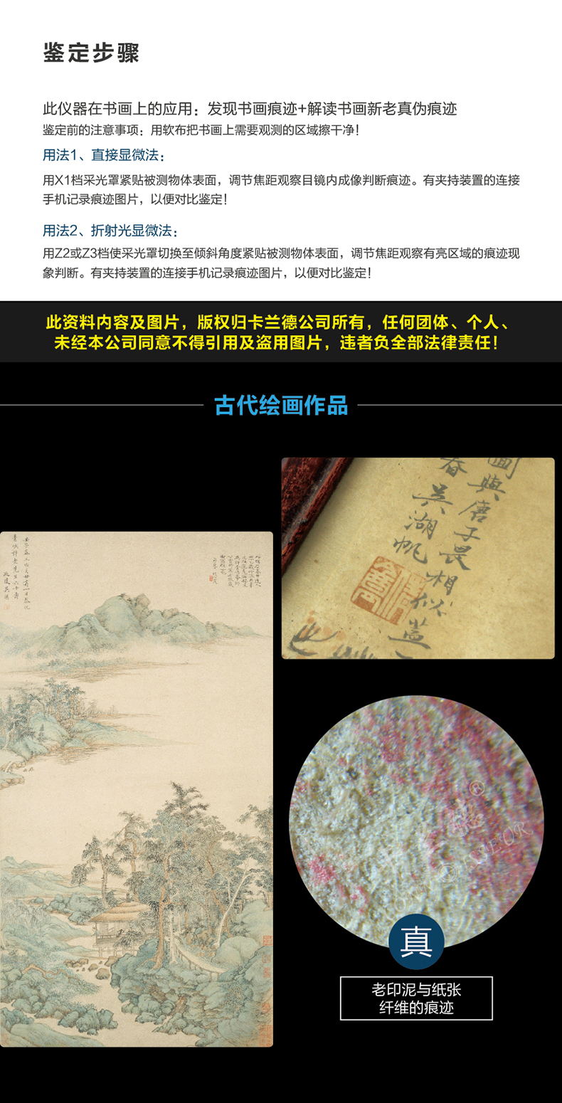 卡兰德品牌-书画、唐卡、文书微观痕迹辅助鉴别-痕迹图文实例引导教学